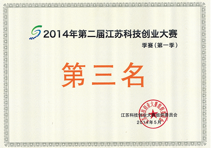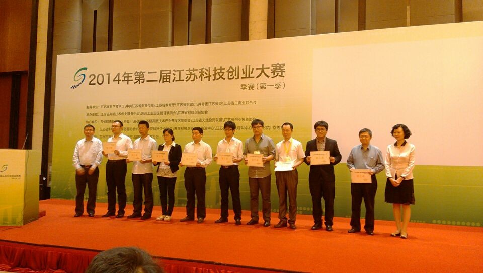 2014年5月21日,我公司CEO宋永江先生携研发中心主任罗云峰先生前往苏州参加2014年第二届江苏科技创业大赛季赛(第一季)答辩,通过PPT演讲及产品展示环节,我公司项目——新型绿色高比能薄膜复合材料锌镍蓄电池获得大赛组委会的一致认可,荣获第三名的好成绩,并且直接晋级半决赛,力争再创佳绩。